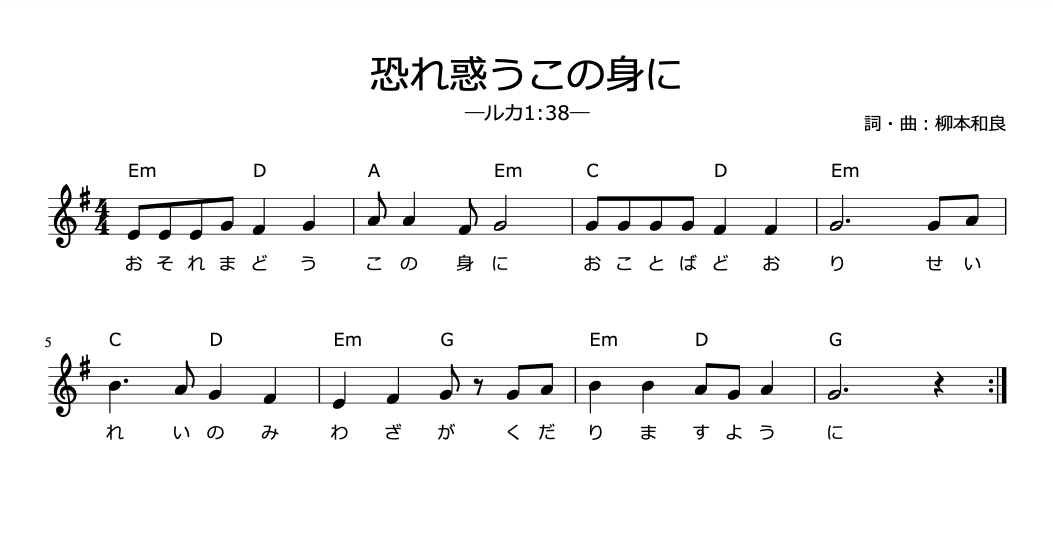 マスクをお付けいただき、オンライン賛美歌13番「恐れ惑うこの身に」(©️柳本和良)を歌います。