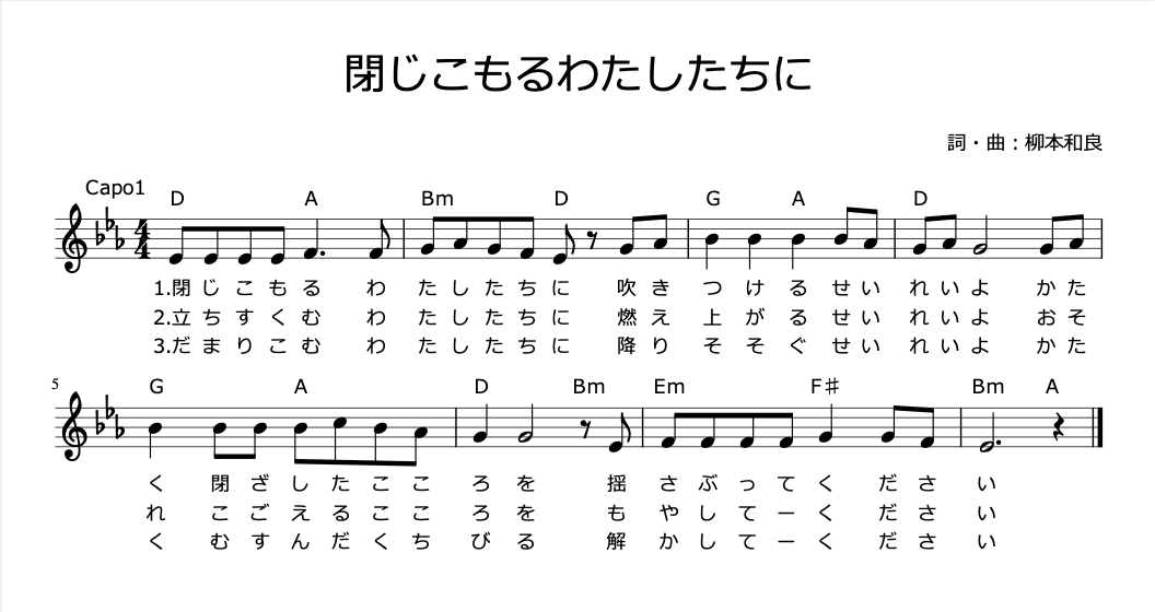 オンライン賛美歌3番「閉じこもる私たちに」(©️柳本和良)を歌います。(差し支えない方はお立ちください)