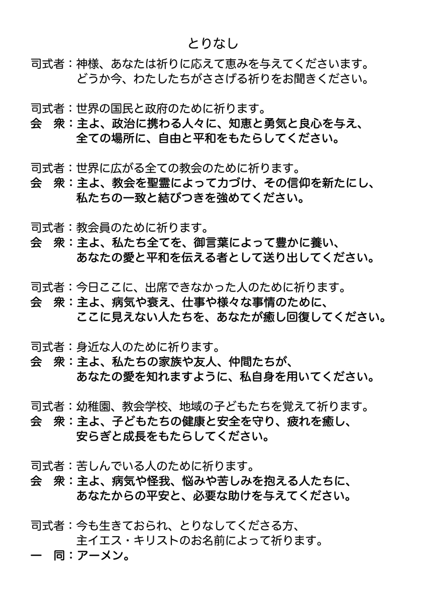◆父・子・聖霊なる神様。今日もまた、あなたによって守られて、日曜日の礼拝に集まることができ、感謝致します。どうか今、初めて来た人、久々に来た人、自宅で、施設で、職場で、屋外で、あなたの言葉を受けようとしている人を祝福してください。