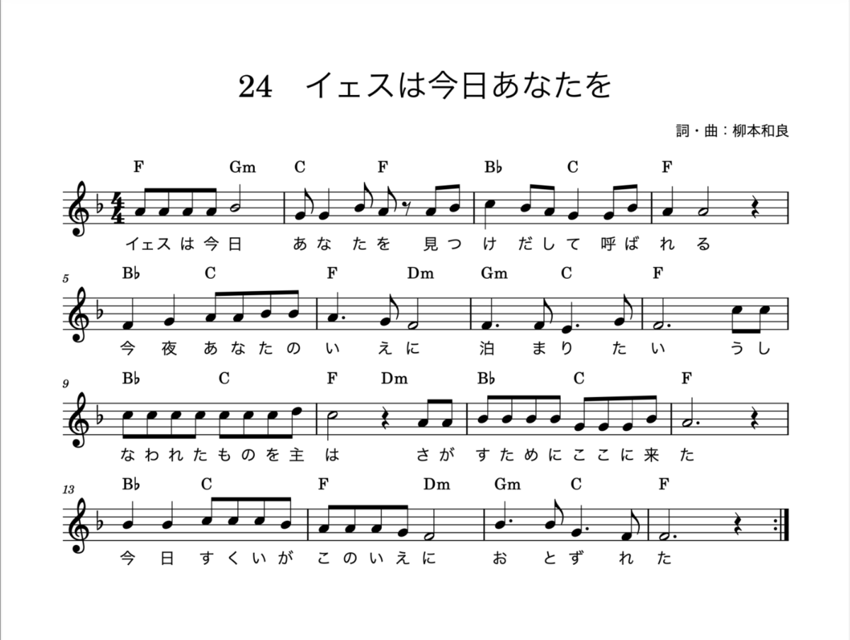 オンライン賛美歌24番「イェスは今日あなたを」(©️柳本和良)を歌います。